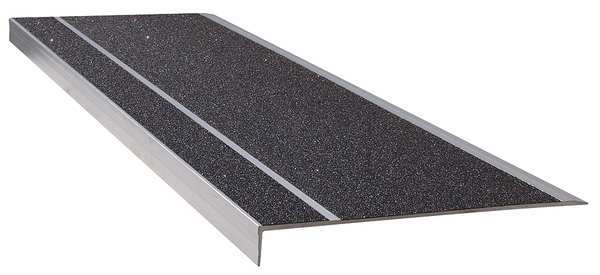Stair Tread, Black, 48in W, Extruded AlumSKU G7603251Categories Antislip Tapes, Treads & Stair NosingsDescription Stair Tread Cover, Lip Height 13/16 in, Nose Style Square, Installation Hardware Included No, Surface Design Single-Strip Grit, Color Black, Edge Style Beveled, For Surface Type Metal Stairs, Wood Stairs, Includes Expansion Shields; Machine Screws; Tapcon Screws; Wood Screws, Indoor/Outdoor Indoor, Outdoor, Installation Method Adhesive and Fasteners, Material Extruded Aluminum, Number of Grit Strips 2, Overall Depth 3 in, Overall Width 48 in, Product Type Anti-Slip Stair NosinggraingerSKU: 20X808, mscSKU: , zoro_no: G7603251, mongo_id: 65bbe80722d7a989a98d24b9