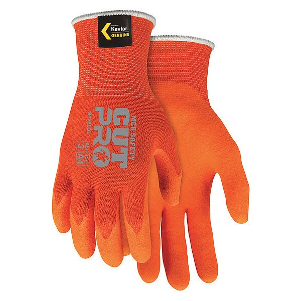 Hi-Vis Cut Resistant Coated Gloves, A4 Cut Level, Foam Latex, 2XL, 1 PR